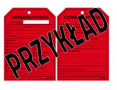 Czerwone etykiety zostały przygotowane w formie bloku z którego można wyrywać etykiety jak kartki z notesu. Jest przygotowany otwór, który można wykorzystać do przełożenia tasiemki co w znaczny sposób ułatwi oznaczenie przedmiotu.